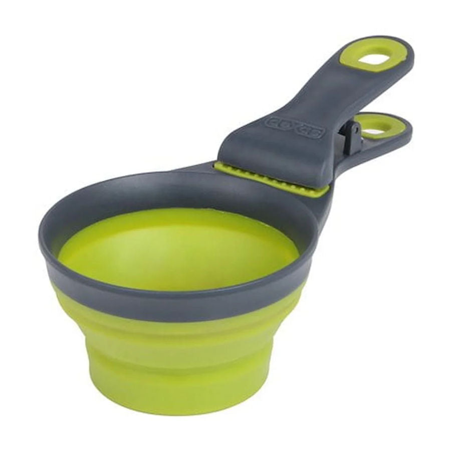 - Half cup scoop collapses flat for storage or clipping