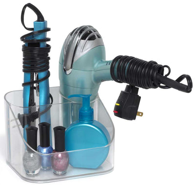 With the addition of the Style Station Organizer, there's no need to leave your hair styling tools scattered on the bathroom counter or vanity anymore. The hair appliance organizer will accommodate most hair dryers, and features three compartments that provide room for curling irons, blow dryers, hair brushes and more.