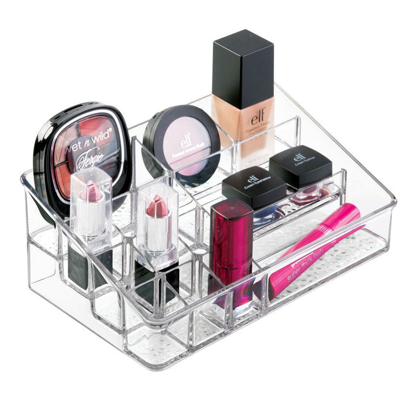 - Cosmetic organizer fits neatly on a makeup table, dresser or bathroom vanity