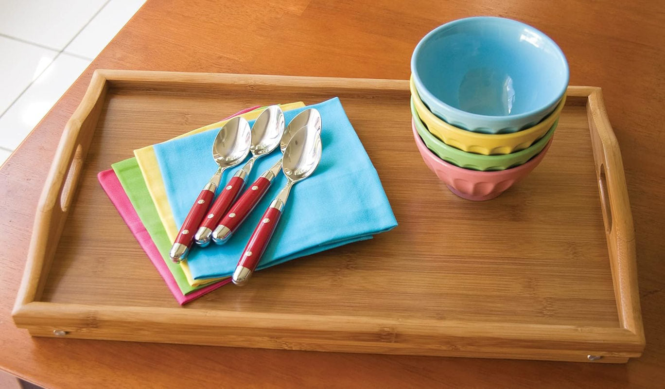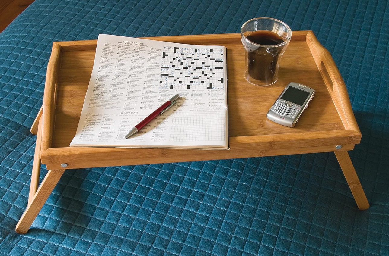 Serve your loved ones with breakfast in bed or do crosswords as you lounge with the Bamboo Serving Tray. This beautifully crafted bamboo tray folds flat or stands up level for serving. Works ideal for those who like to eat breakfast in bed or do their daily crossword puzzles with a cup of coffee.