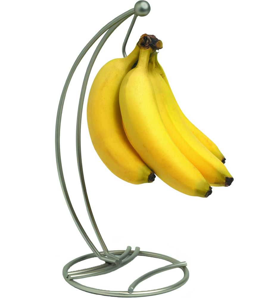 The Pantry Works Banana Tree securely holds a bunch of bananas or grapes so that they ripen evenly. This banana tree looks great in any kitchen, either on the countertop or the breakfast table. The pantry works banana hanger features steel wire construction with a stylish satin nickel finish. The heavy round base keeps this organizer from tipping under the weight of a big bunch of bananas or grapes. By suspending your fruit, the banana hanger prevents bruising and lets your fruit ripen evenly.