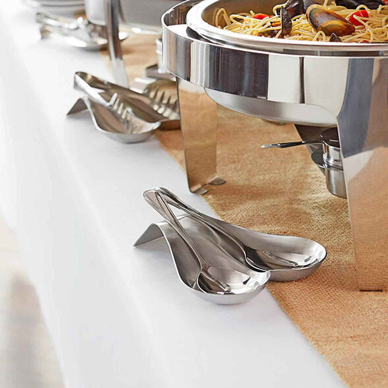Keep your countertop and stove clean even when cooking messy meals by storing your spoons on this Double Spoon Rest in-between stirs. With durable stainless steel construction for years of use and a brushed steel finish to complement most decors, this double spoon holder adds function and style to any kitchen. You can store two wooden spoons or even a couple ladles by the pot with the two slots. The angled design allows you to grab the spoon handles with ease.