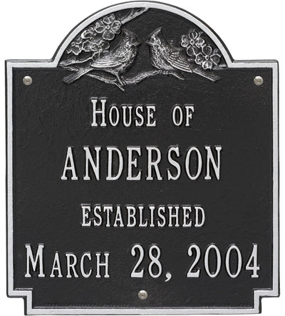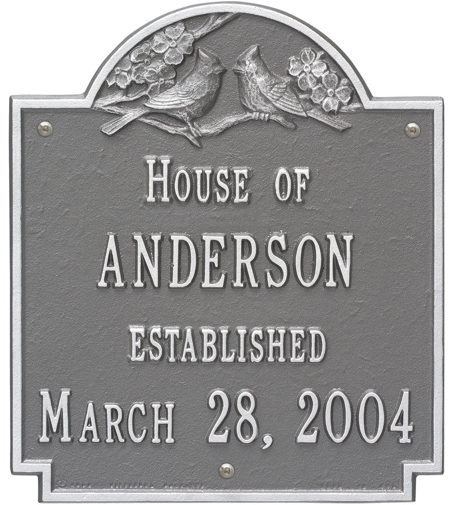 A Wall Mount Cardinal Personalized Wedding Plaque is a timeless way to commemorate and display a couple's marriage date. This custom plaque provides space for a 12 character family name and 12 character anniversary date, and is crafted in the USA with durable materials and paints to provide a lifetime of performance.