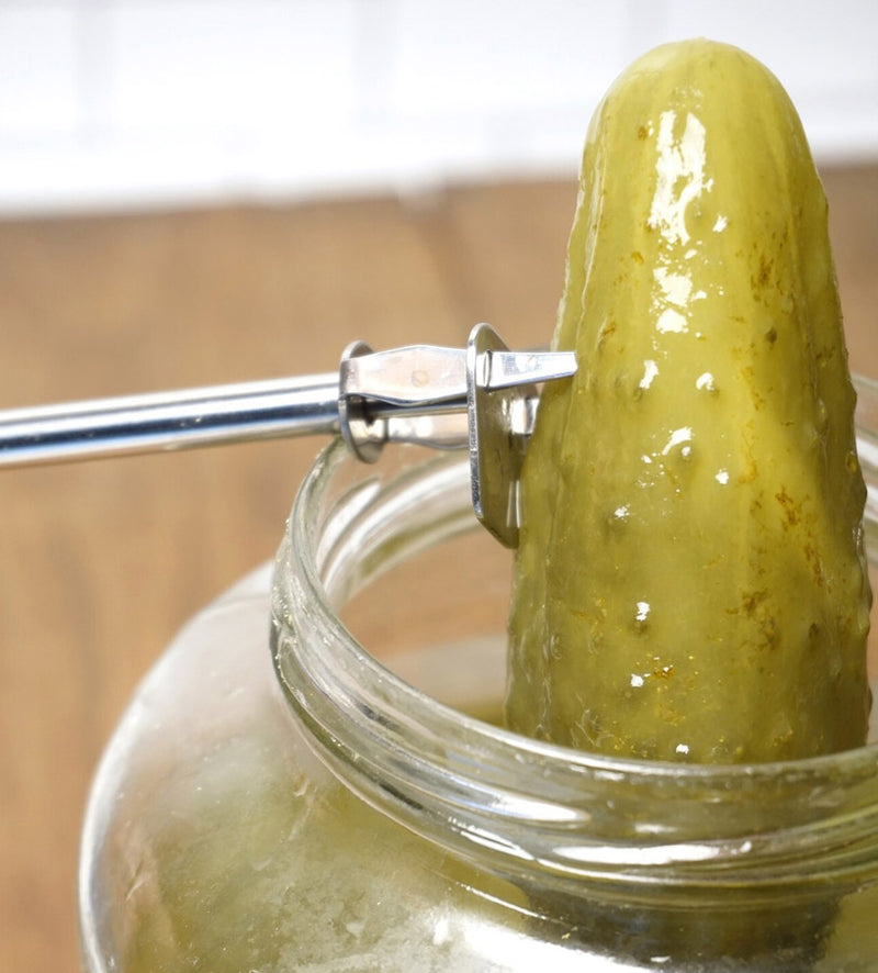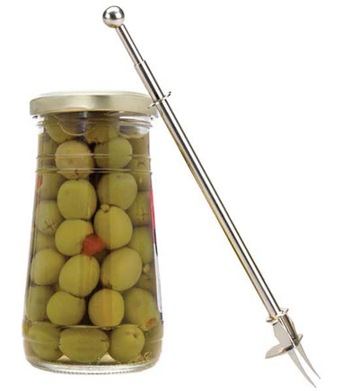 This long-reach Pickle Fork removes olives, pickles and other marinated vegetables with ease and looks great on your table when entertaining. It's made of high-quality 18/8 stainless steel, which will give you years of corrosion-free service. It features a ball-end release mechanism for no-fuss pickle serving - just press to release. Functional and attractive, this pickle fork will make a nice addition to your kitchen gadget collection.