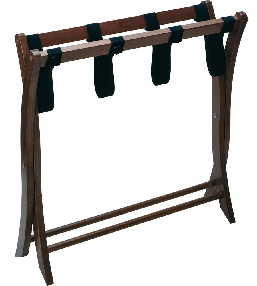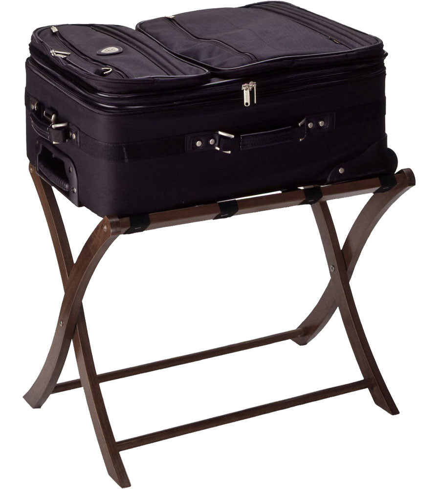 Easy to use and portable, this Folding Luggage rack provides a sturdy place to set a suitcase while your guests pack or unpack. This luggage rack can also fold and slide under the bed or into a closet for easy storage. The luggage stand is ideal for use holidays for friends and family and is a must-have for any guest room. All wood construction with a beautiful Walnut finish this sturdy rack will hold almost any bag. If you are an Airbnb or Vrbo host you need a luggage rack for your guests. With a height of 20 inches, this luggage stand conveniently stands alongside most beds.