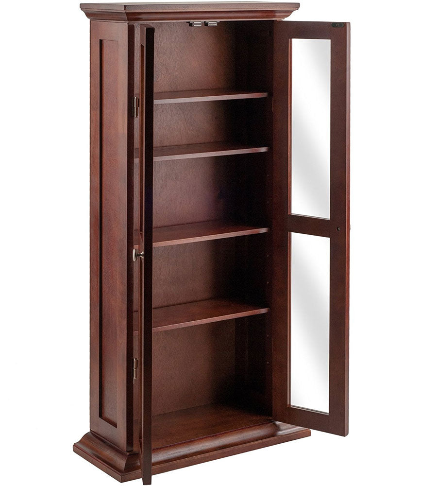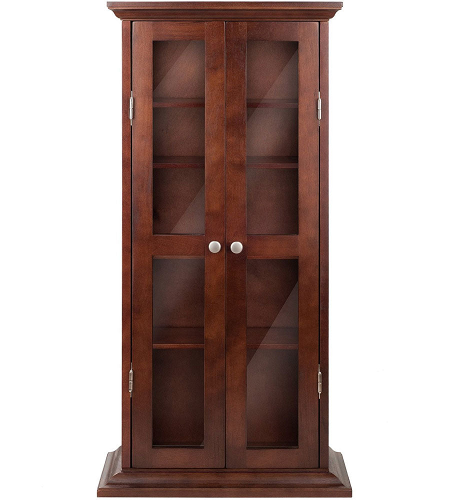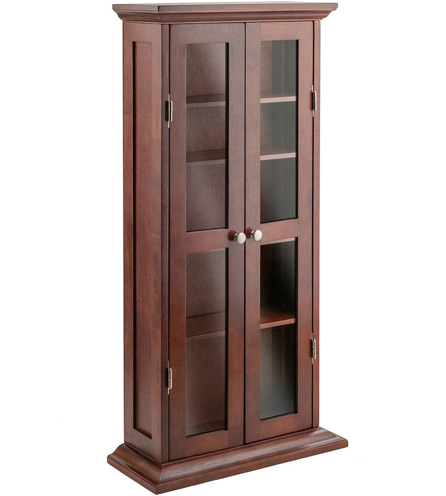 One fixed shelf and four adjustable shelves are included so you can easily store a wide assortment of media items inside. While some assembly is required, easy to follow assembly instructions are included. You can easily store up to 135 DVDs, 205 CDs, 75 videocassettes, or any combination of media items inside the storage cabinet.
