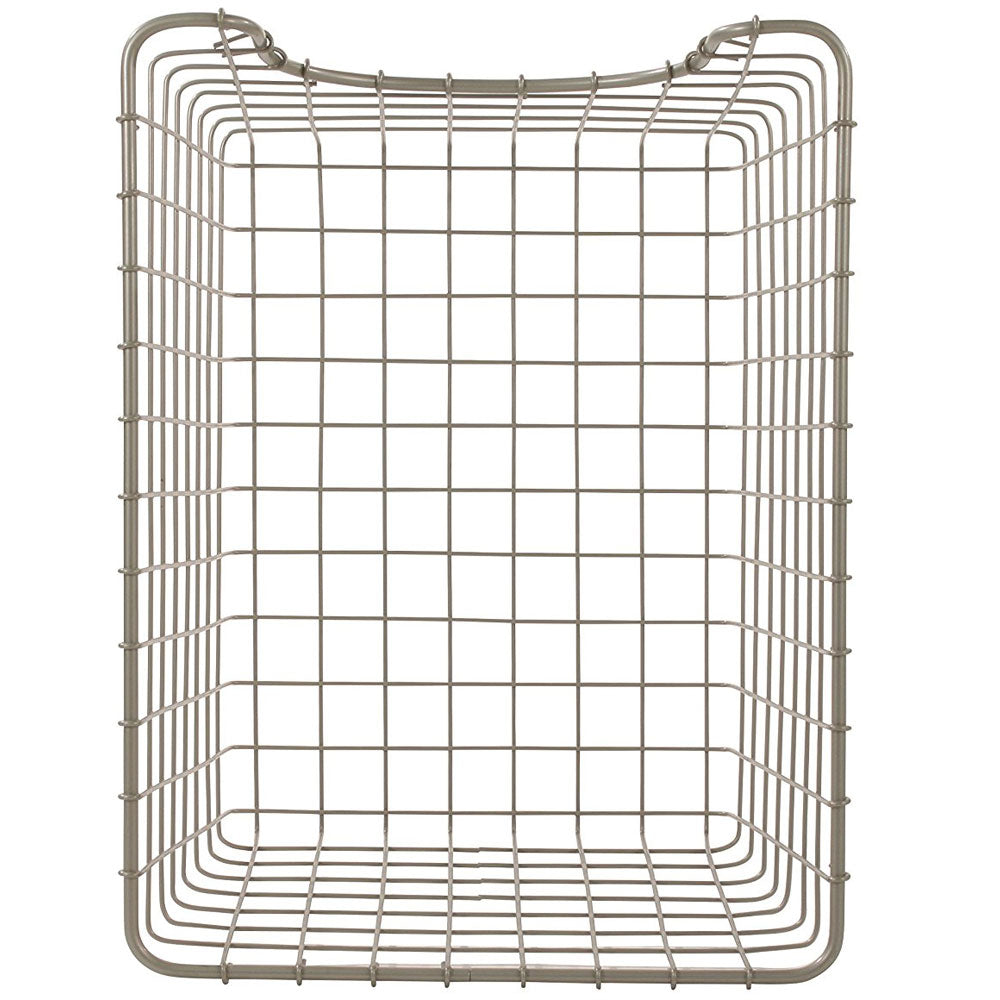 Neatly organize your pantry, garage, bathroom cupboard, or even your closet with the Nickel Wire Storage Basket. With a strong steel construction and class nickel finish that blends well with most decors, this pantry basket is both stylish and functional. The scoop neck allows you to easily place items inside and the open wire design is perfect for viewing the contents from a distance. This simple yet effective storage solution lets you easily organize contents on a shelf or under the sink.