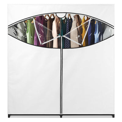 Breathable fabric wraps around a extra-strong and durable 60" wide frame. A zippered front opening allows easy access to the contents of this closet, while the clear vinyl window enables you to identify the contents without opening the wardrobe.