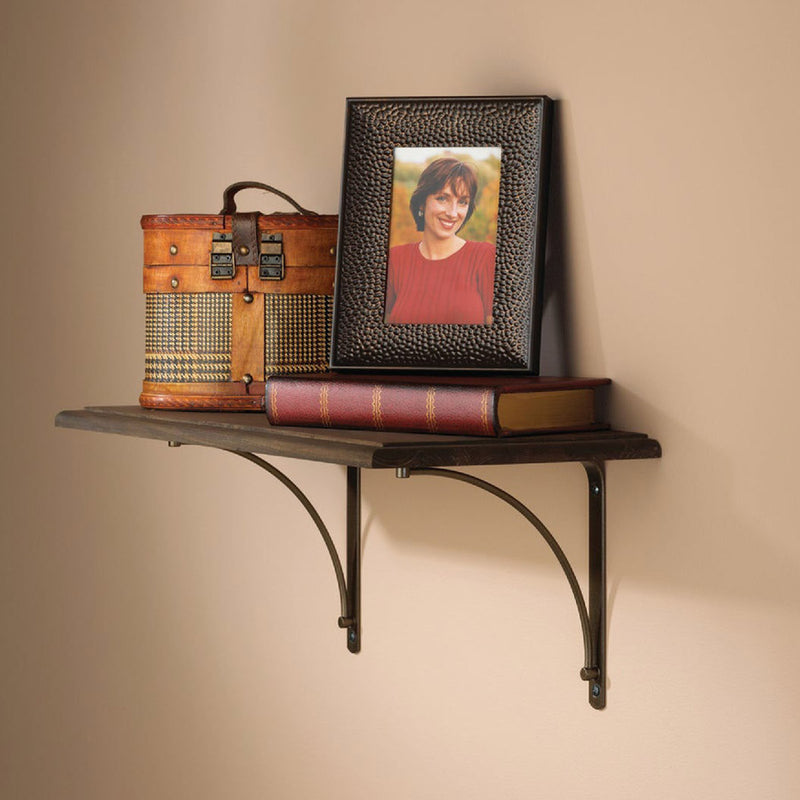 Add tasteful clean lines and the simplicity of the arch to a shelving project in any room with the Manchester Decorative Metal Shelf Bracket - 8 Inch. With durable steel construction for years of reliable use this stylish shelf bracket will compliment any decor. This shelf support is available in multiple finishes and can support shelves from 8 - 11 inches in depth The bracket offers simple style and function while the reinforcement bar offers additional support to the unit. Four pre-drilled holes allow for easy installation. Brackets are sold individually so you can get as many as you need based on your shelf length.