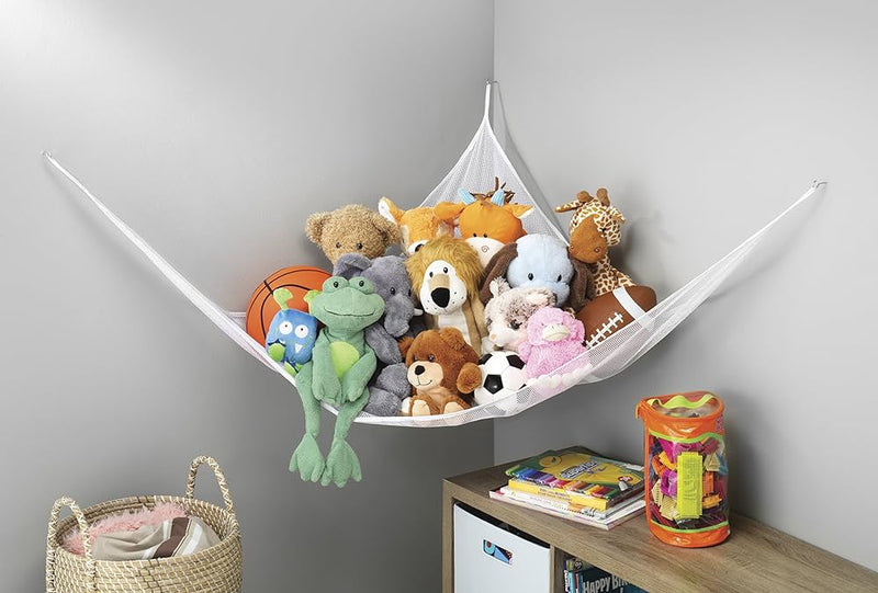 The Stuffed Toy Organizer is perfect for storing and displaying the many toys of your children. Great for dolls, stuffed animals, and more! Width is 72 inches and our toy hammock makes room cleanup fun and easy. Mounting hardware is included. Mesh net is white with white trim. A must have for any kids room!