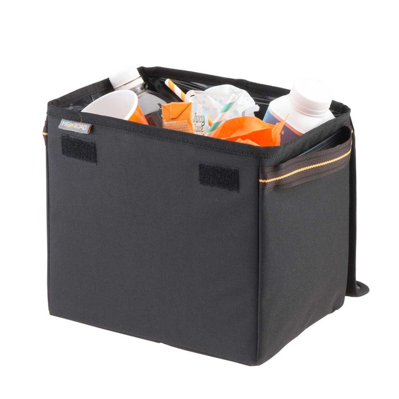 Keep your car neat, clean, and free of garbage with this large Car Trash Bin. These sturdy waste containers feature a weighted bottom with Velcro to grip the floor and keep the trash can upright, a leak-proof vinyl lining that wipes clean easily, and rigid sidewalls that prevent collapse. The lid securely closes with Velcro fasteners to hide trash. Made of black 600 denier pack cloth for durability and easy cleaning, this trash bag is a great auto accessory for your car, truck, van, or SUV.